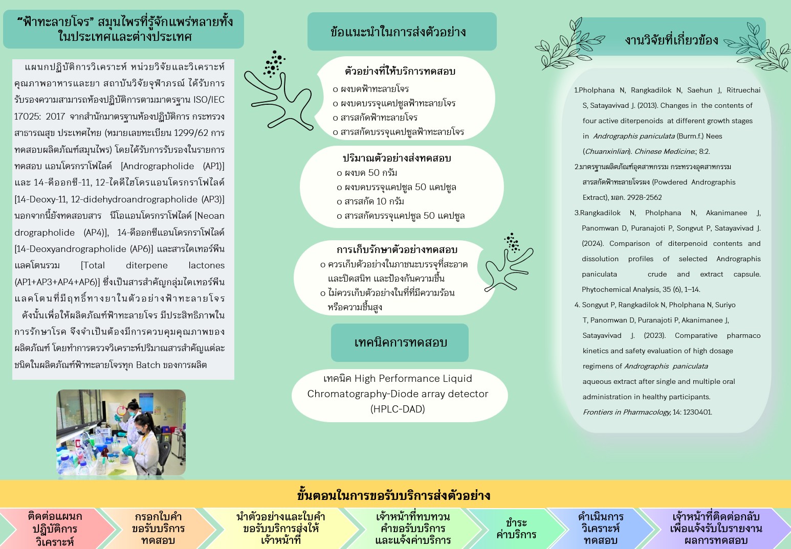 การตรวจวิเคราะห์ปริมาณสารสำคัญไดเทอร์พีนอยด์ในวัตถุดิบและผลิตภัณฑ์สมุนไพรฟ้าทะลายโจร